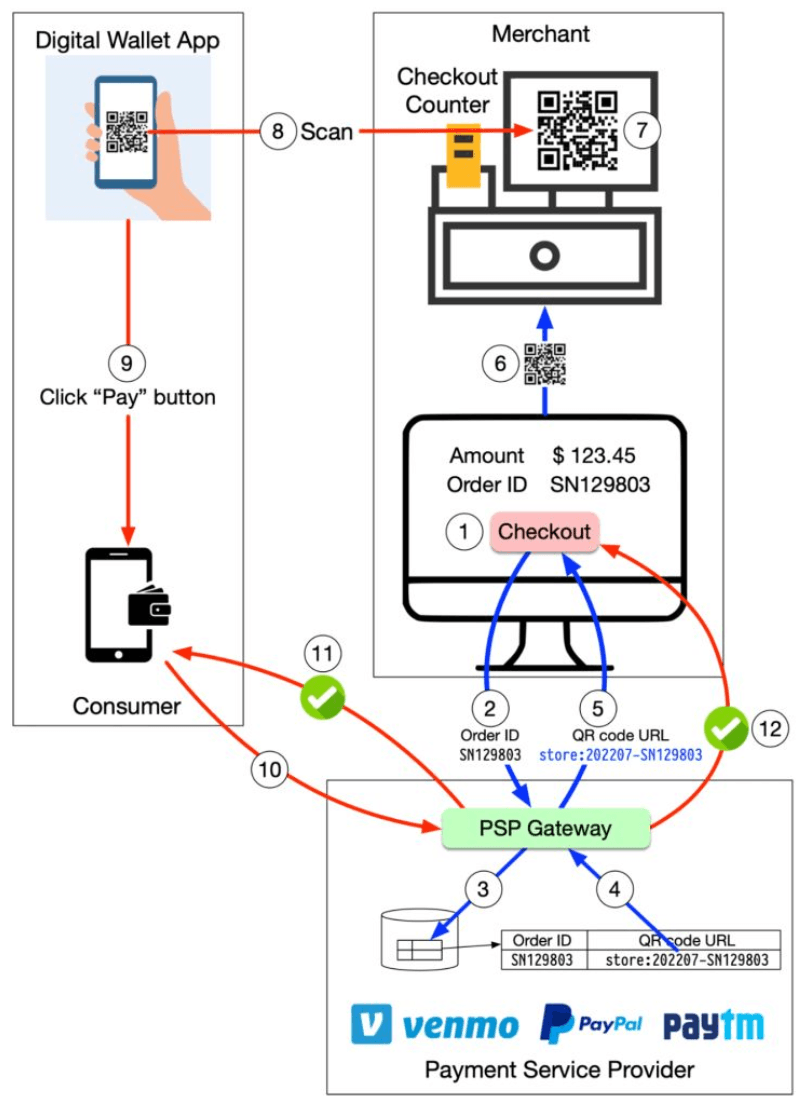 - The merchant's POS system then uses the information from the scanned QR code to initiate the payment request through their PSP. This might pull a pre-authorized amount (if the QR contains transaction details) or prompt the customer for final approval on their device.