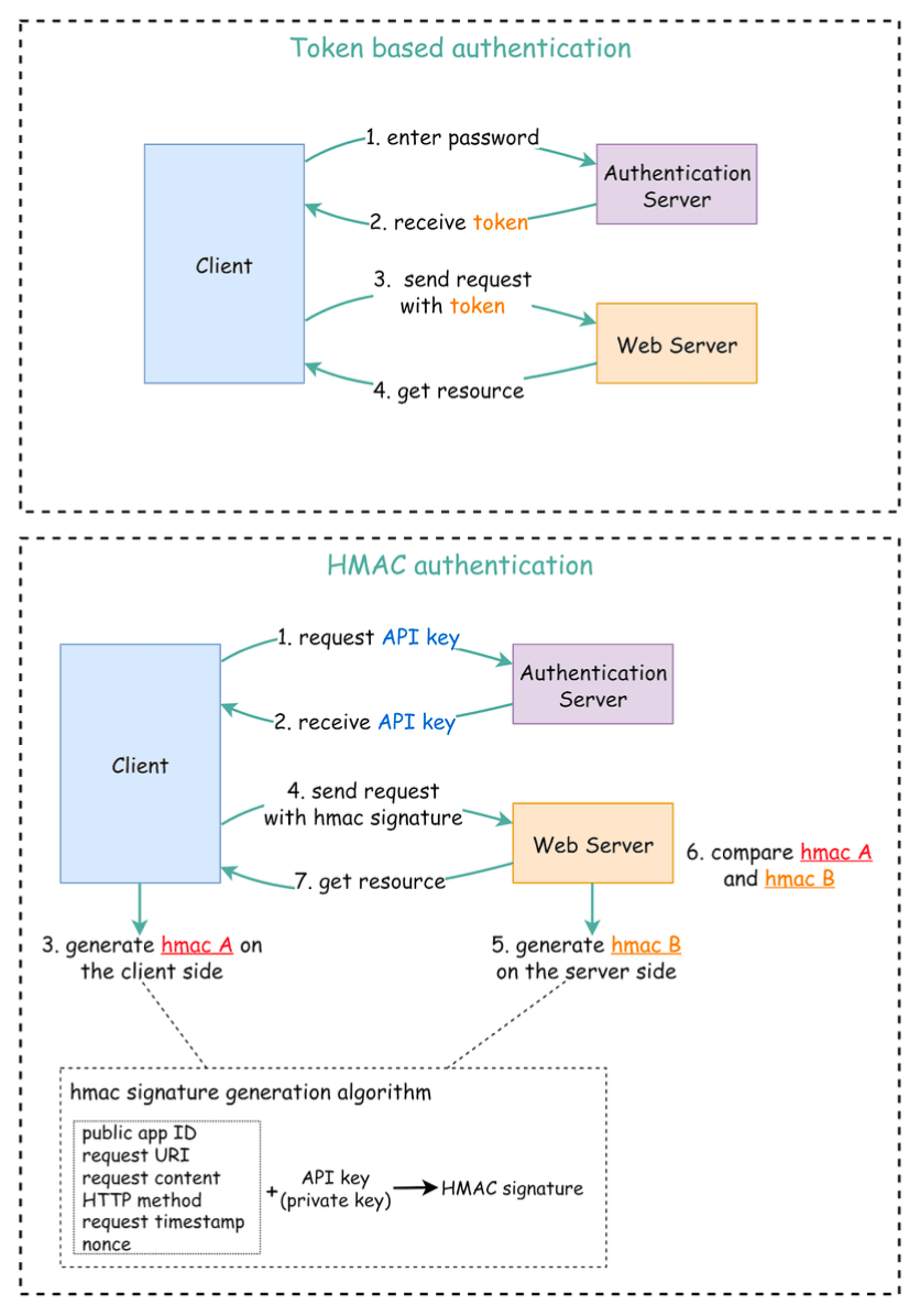 hmac A(from the client) withhmac B(generated by the server). - If the signatures match, the server considers the request authentic and processes it. If not, the request is rejected.